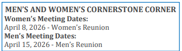 The spiritual director for Women’s Cornerstone and Men’s Cornerstone is Fr. Christian. Please contact Betty at wcornerstone@sjcnj.org for more information about Women’s Cornerstone, or Fred at mcornerstone@sjcnj.org for more information about Men’s Cornerstone.