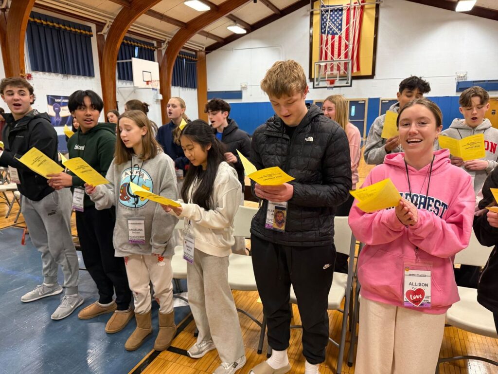 Fr. Christian with Confirmation candidates on retreat #1 (Feb. 2026)