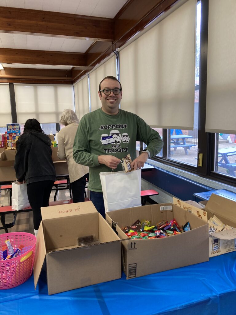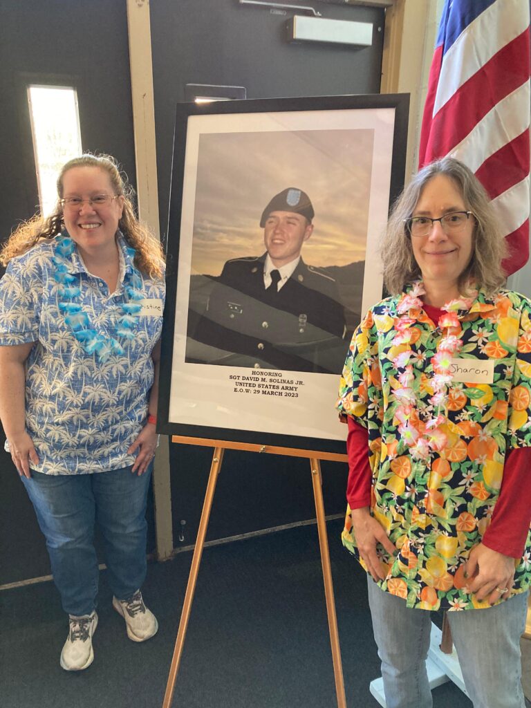 Christine Young and Sharon Murdock coordinated the volunteers to prepare care packages for David Solinas’ airborne unit. David Solinas, a parishioner, lost his life in 2023 in service to his country, Rest in peace, David.