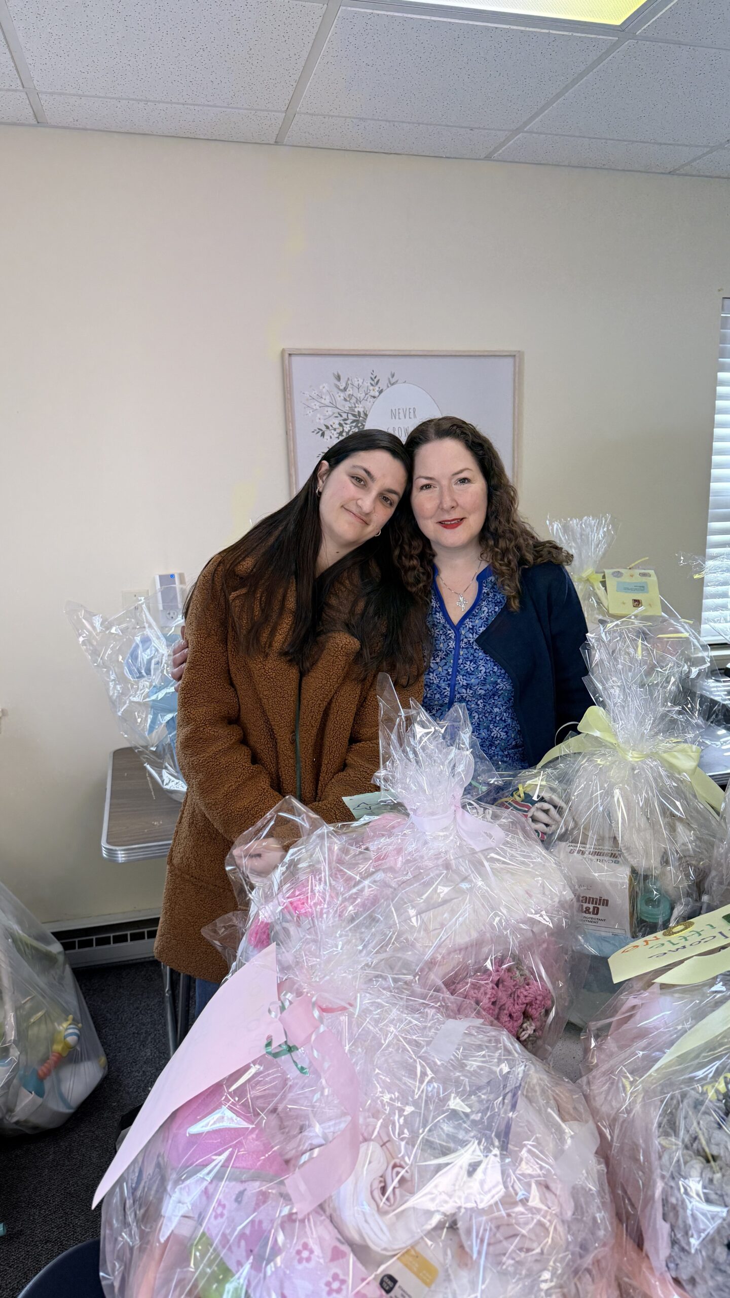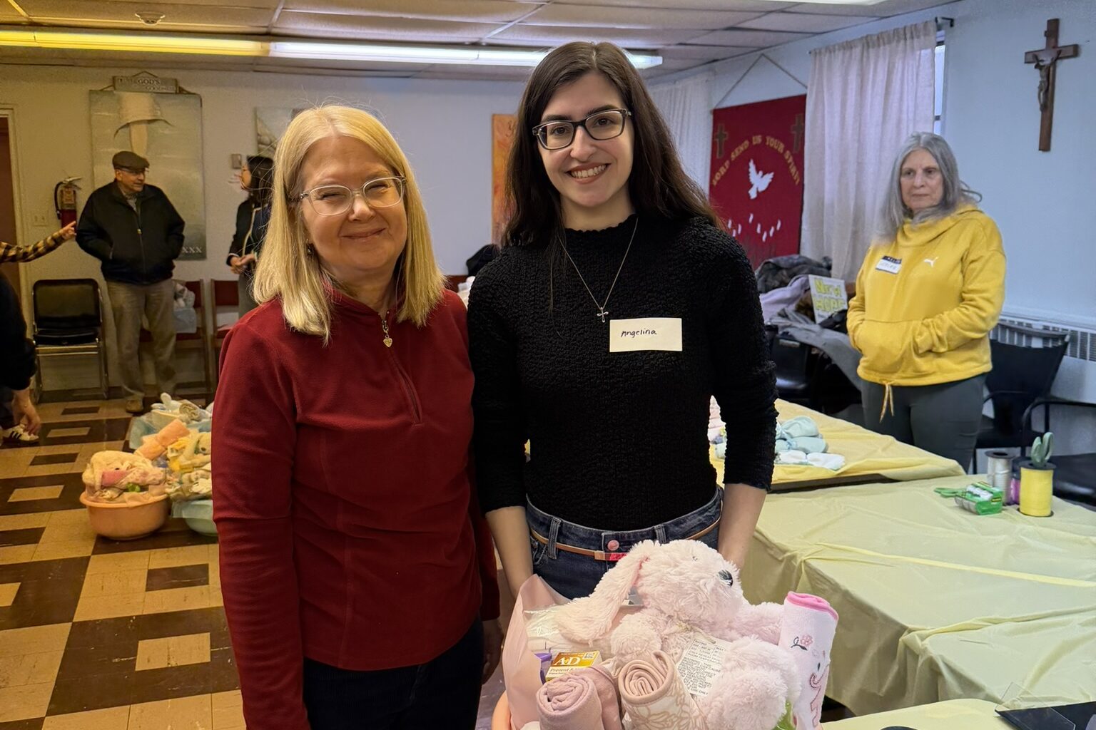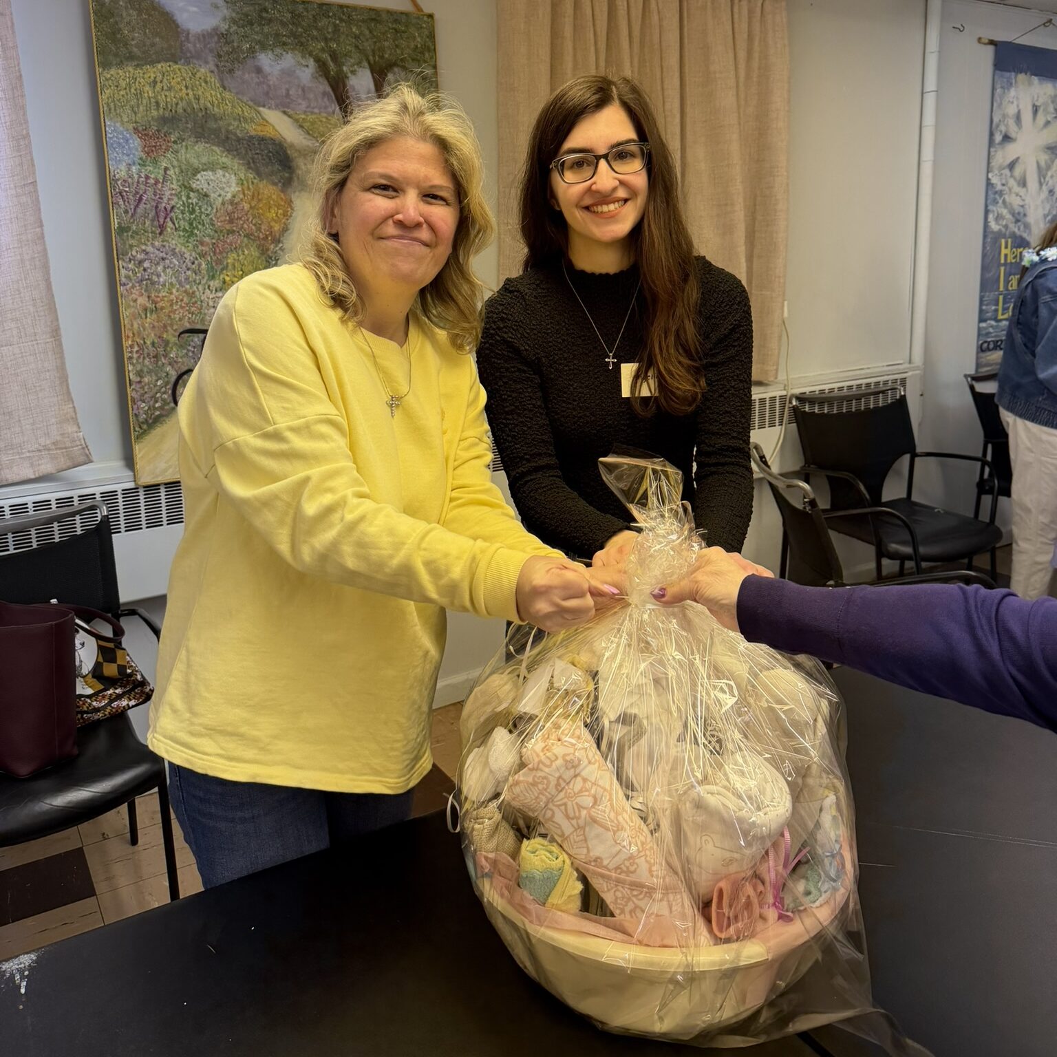 Connie Vincenti and Melinda Rabbia co-led the effort to create 28 newborn baby baskets for moms helped by New Hope PRC in Westwood for the parish Day of Service (mar. 2026)
