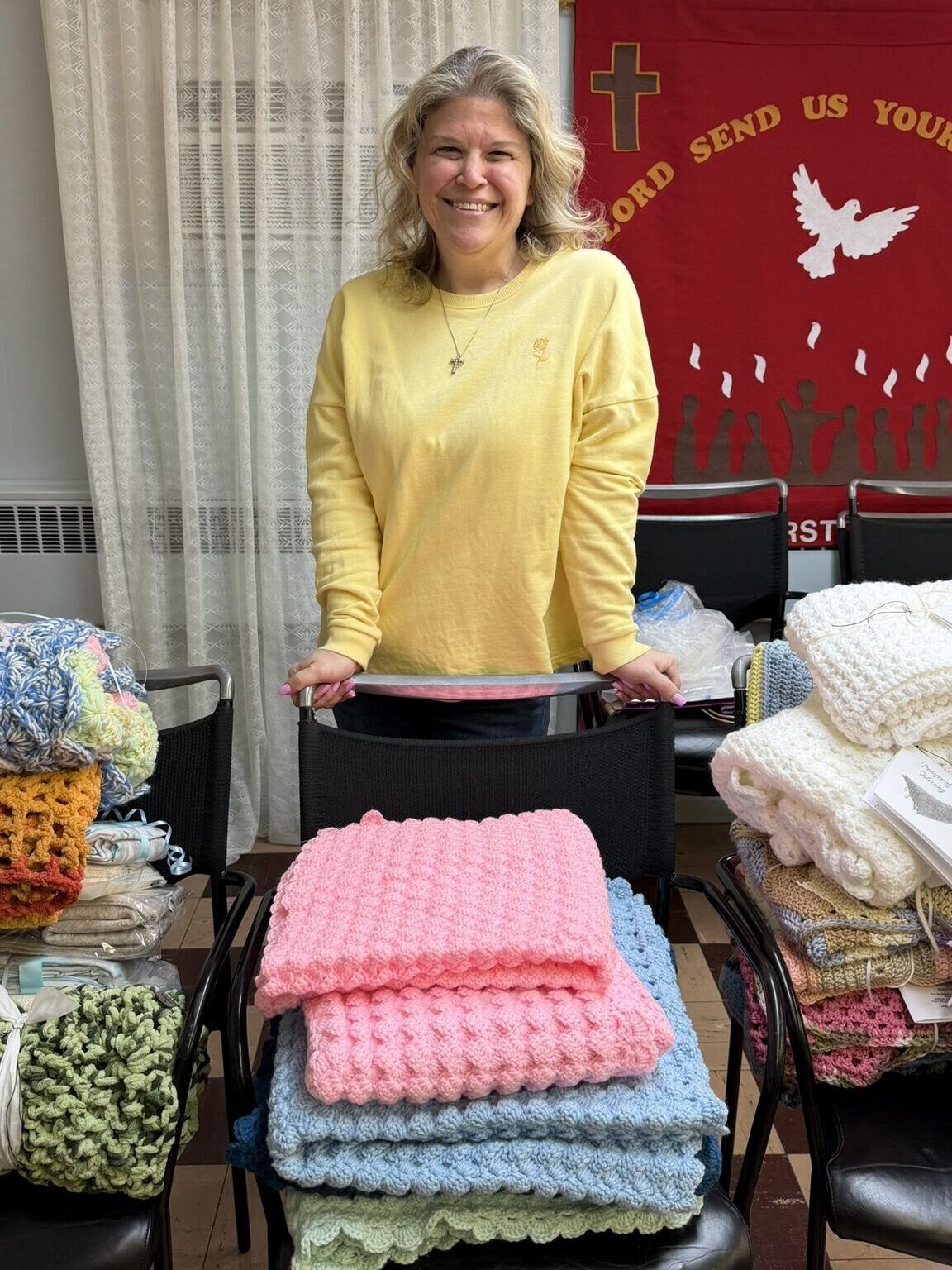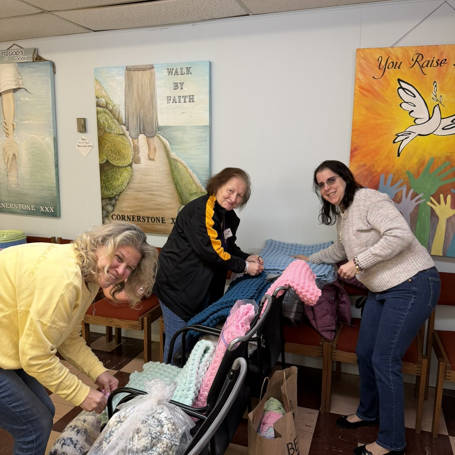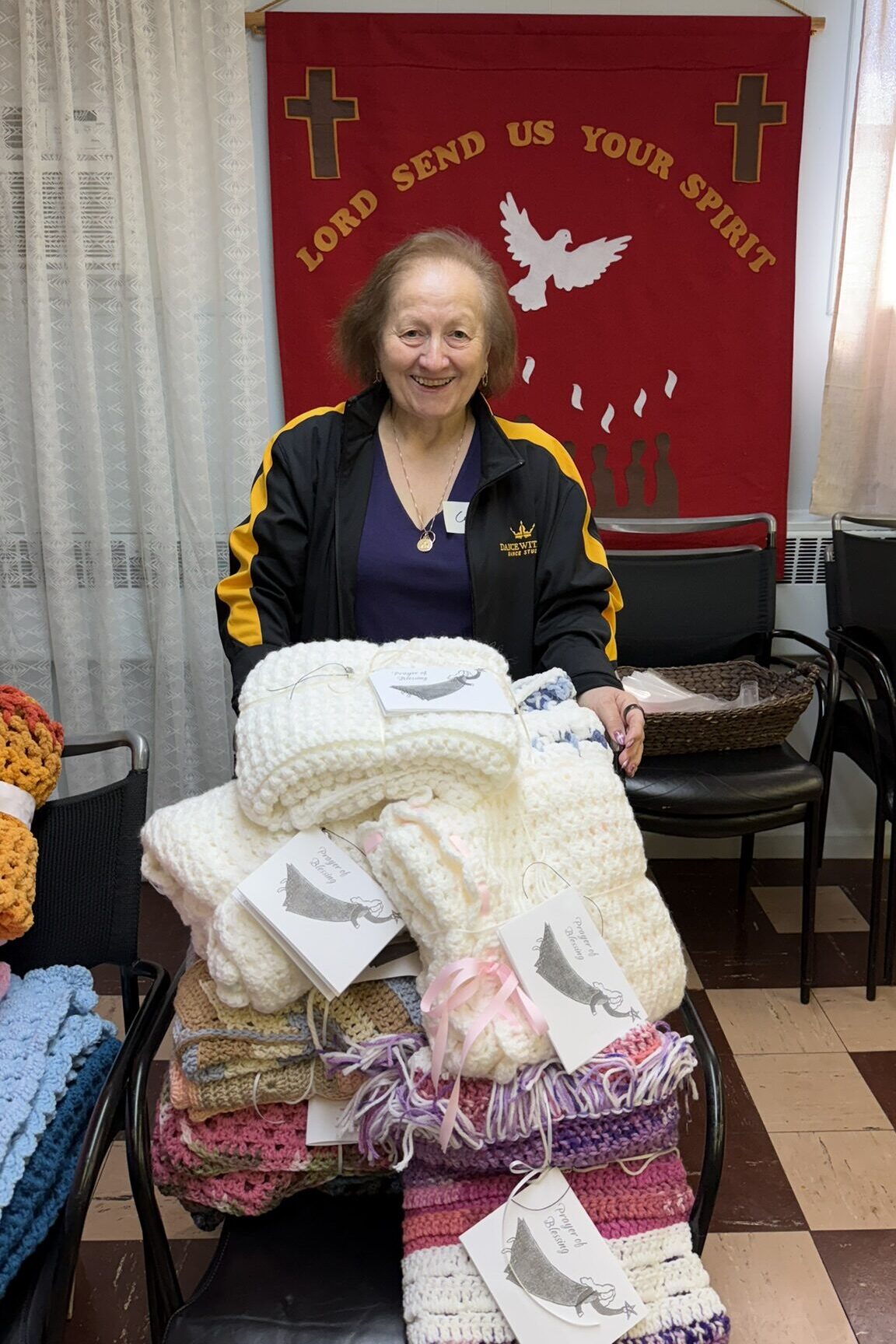 The SJ Shawl Ministry generously gave their time and talent to create handmade blankets.