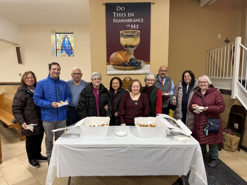 Our parish celebrated St. Patrick’s Day and St. Joseph’s Day on Sunday 3/17; here is a photo of parishioners continuing to celebrate our parish patron saint on St. Joseph’s day with some Sfingi di San Giuseppe! (Mar. 2024)