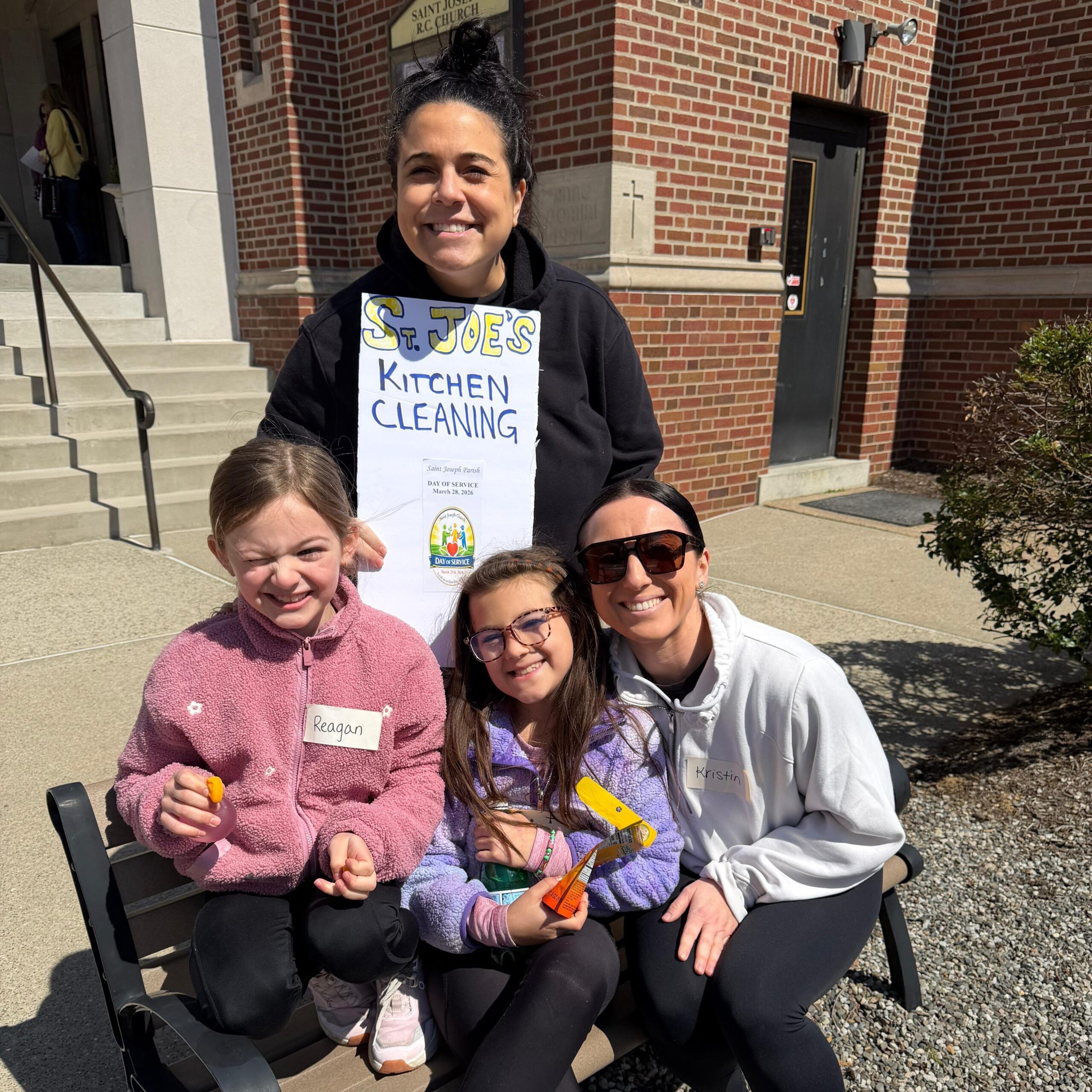 Some of the service station leaders gathered on the steps of the church before our Parish Day of Service. Jane Kiernan and Jen McKeague (back row) led the overall effort. (Mar. 2026)