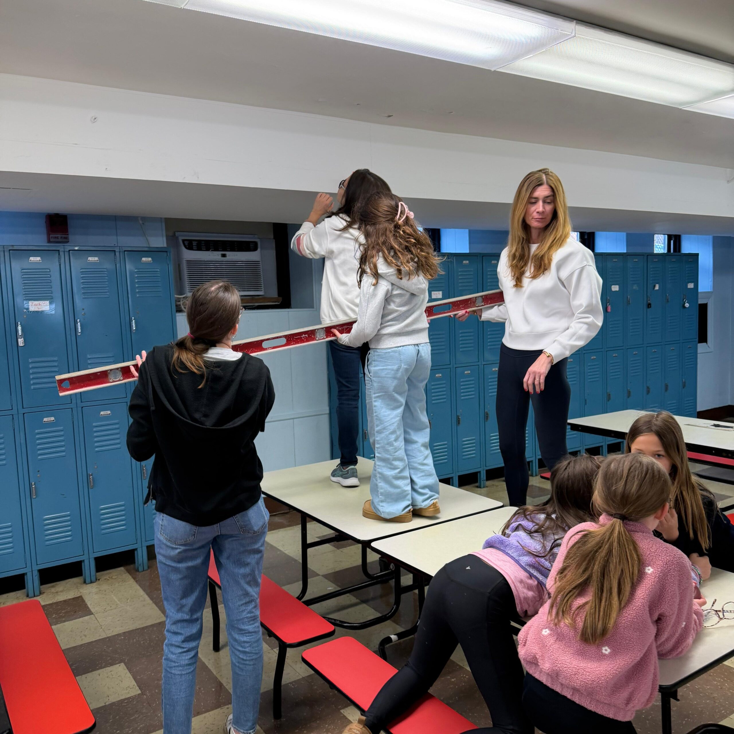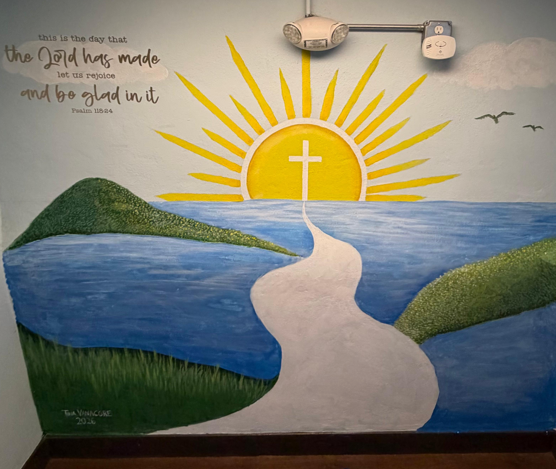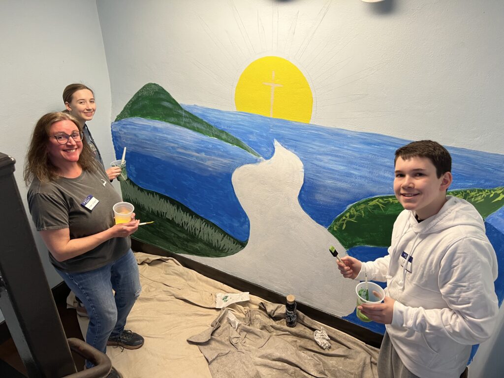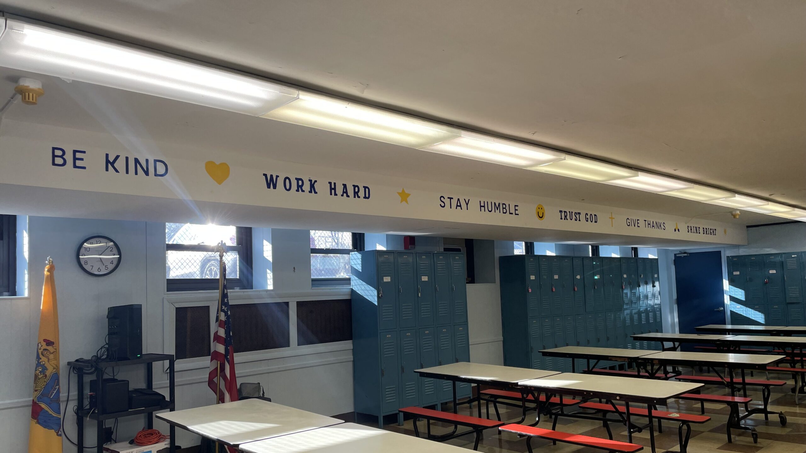 The upper school team used paint to enhance the caefteria and stairwells of SJS