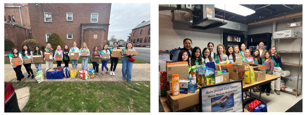 Academy of the Holy Angels recently ran a drive to collect diapers, wipes, and detergent for the Saint Joseph Care Corner. (See photo above). In addition, Oradell Girl Scout Troop 95586 conducted a drive to collect feminine hygiene products. (not shown) The items collected by SJCC are not eligible for purchase with food stamps.  (Apr, 2024)