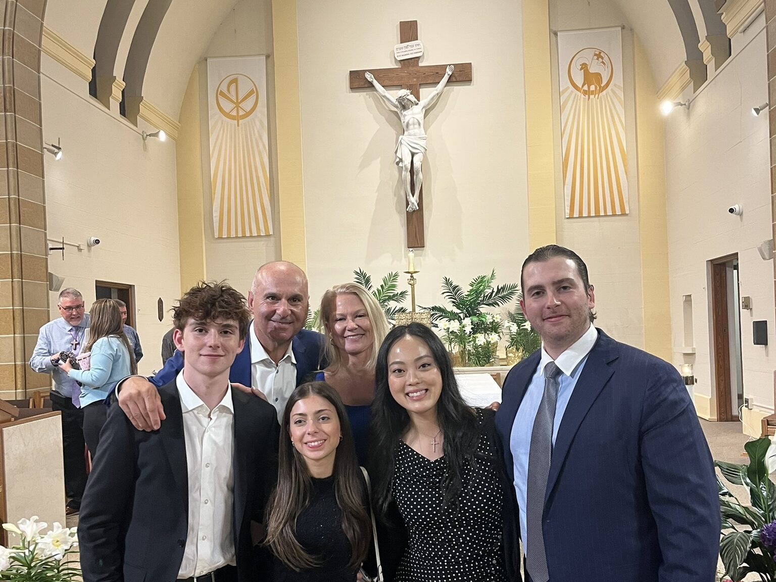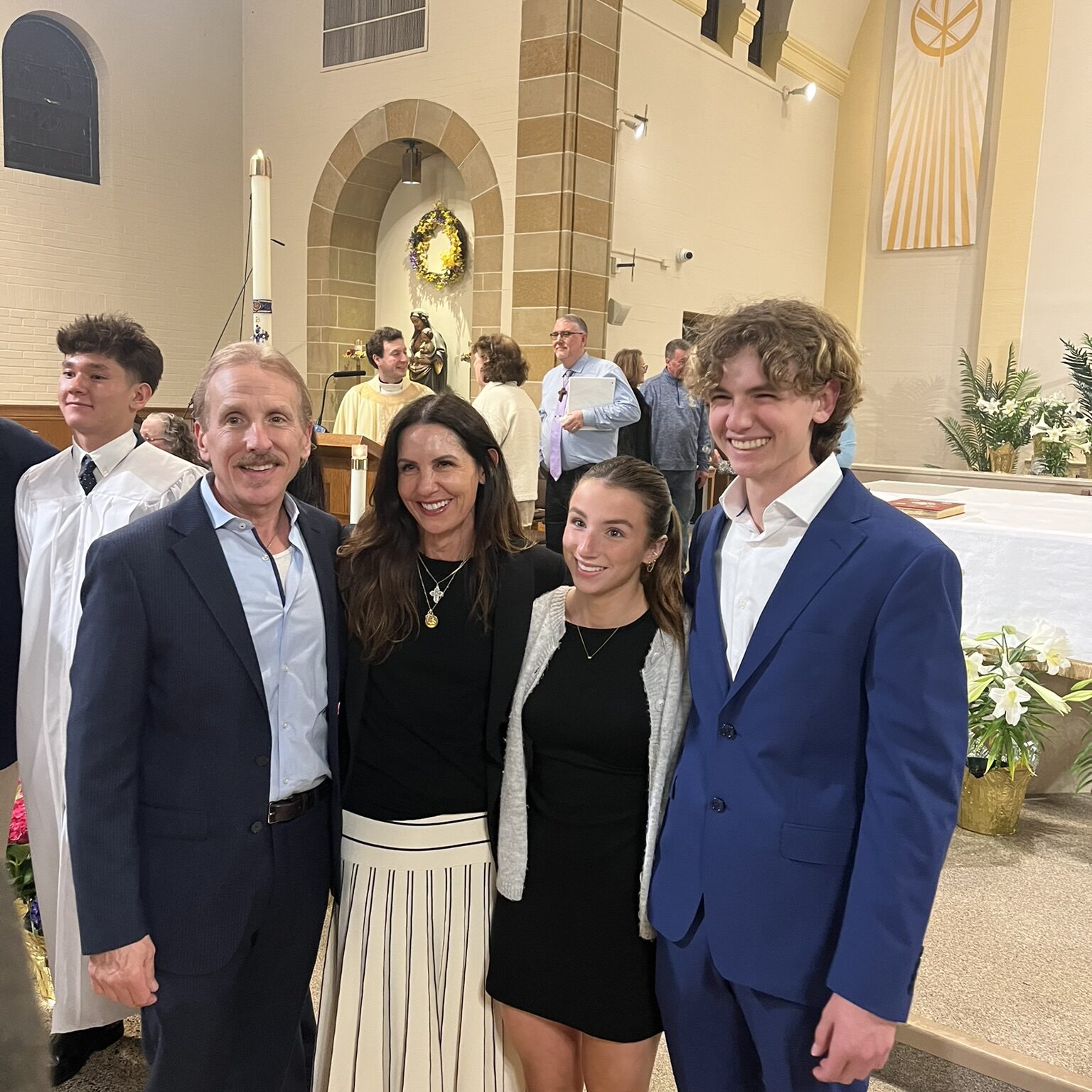 Congratulations to Diego Salcedo, who just completed his Sacraments of Initiation with Confirmation. With Diego in the two photos are his parents and sister, his sponsor Fred Fakharzadeh, Bishop Saporito, and Fr. Christian. Welcome and blessings to Diego! (April 2024)