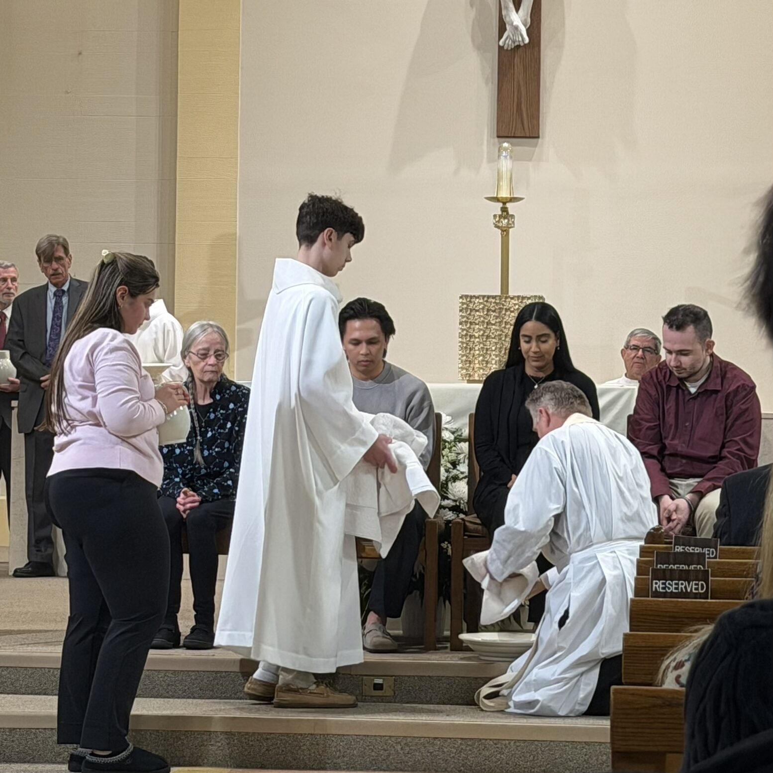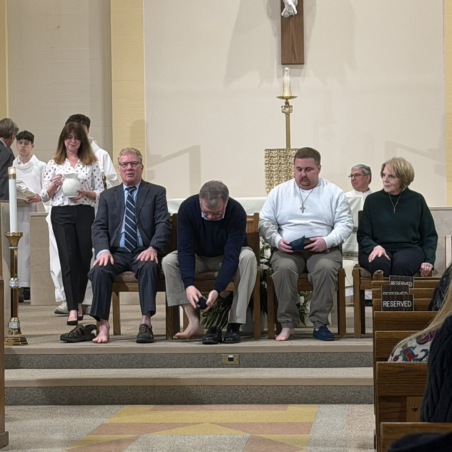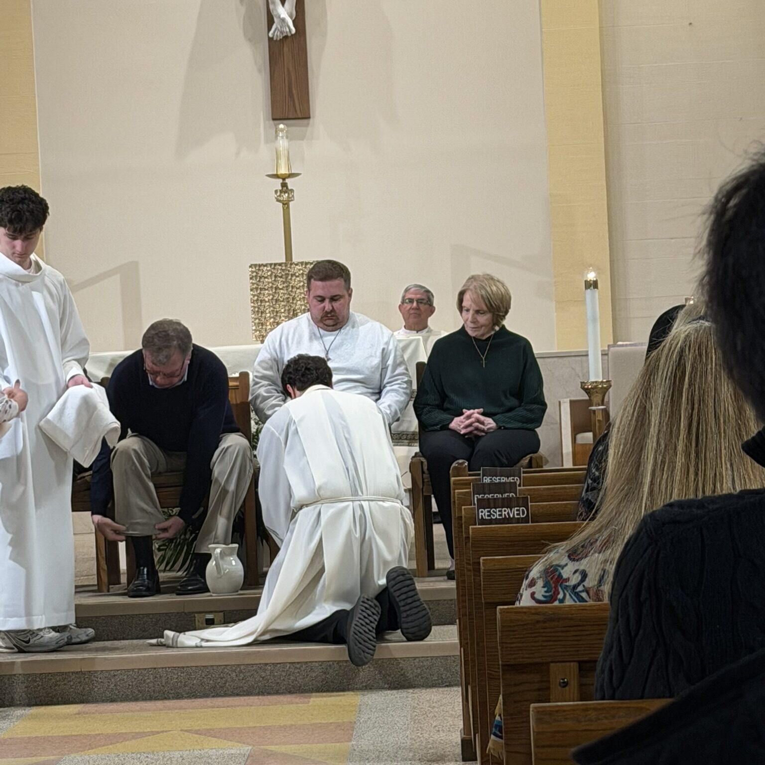 Father John washed the feet of parishioners