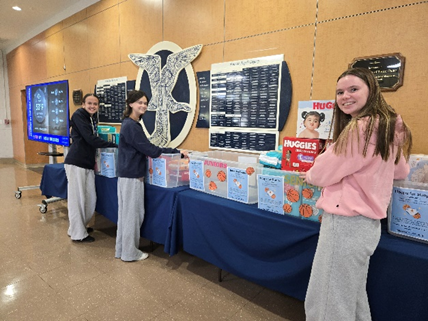 The Academy of the Holy Angels Outreach Club sponsored a “March Madness” diaper drive to benefit the St. Joseph Care Corner (SJCC). Competition was held between the classes and resulted in an abundance of diapers for the SJCC. The students’ donations, of mostly large size diapers, fulfill a great need in our community.  Large size diapers are one of the most sought-after items. (Mar. 2026)