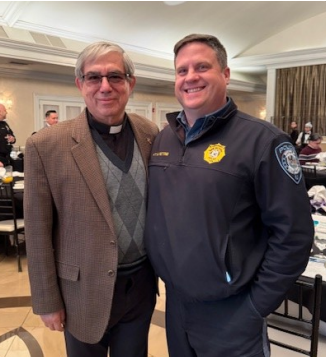 Deacon George, representing our parish at the Bergen County prosecutor office faith-based breakfast with parishioner Scott Petrie. (Mar. 2026)